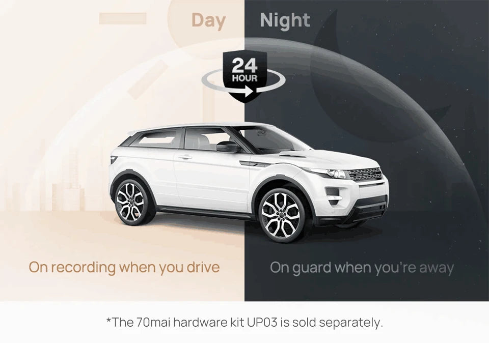 For parkeringsmodus anbefales hardwire-kit slik at kameraet får konstant, overvåket strøm med batterivern (lavspenningsbeskyttelse). A810 strømfødes via USB-C, så 70mai UP03 (Type-C) er et trygt standardvalg, mens UP06 gir flere spenningsnivåer og justerbar cut-off for mer krevende oppsett. Har du behov for bakre dekning, kan bakre kamera kobles til via AV-In (tilbehør).