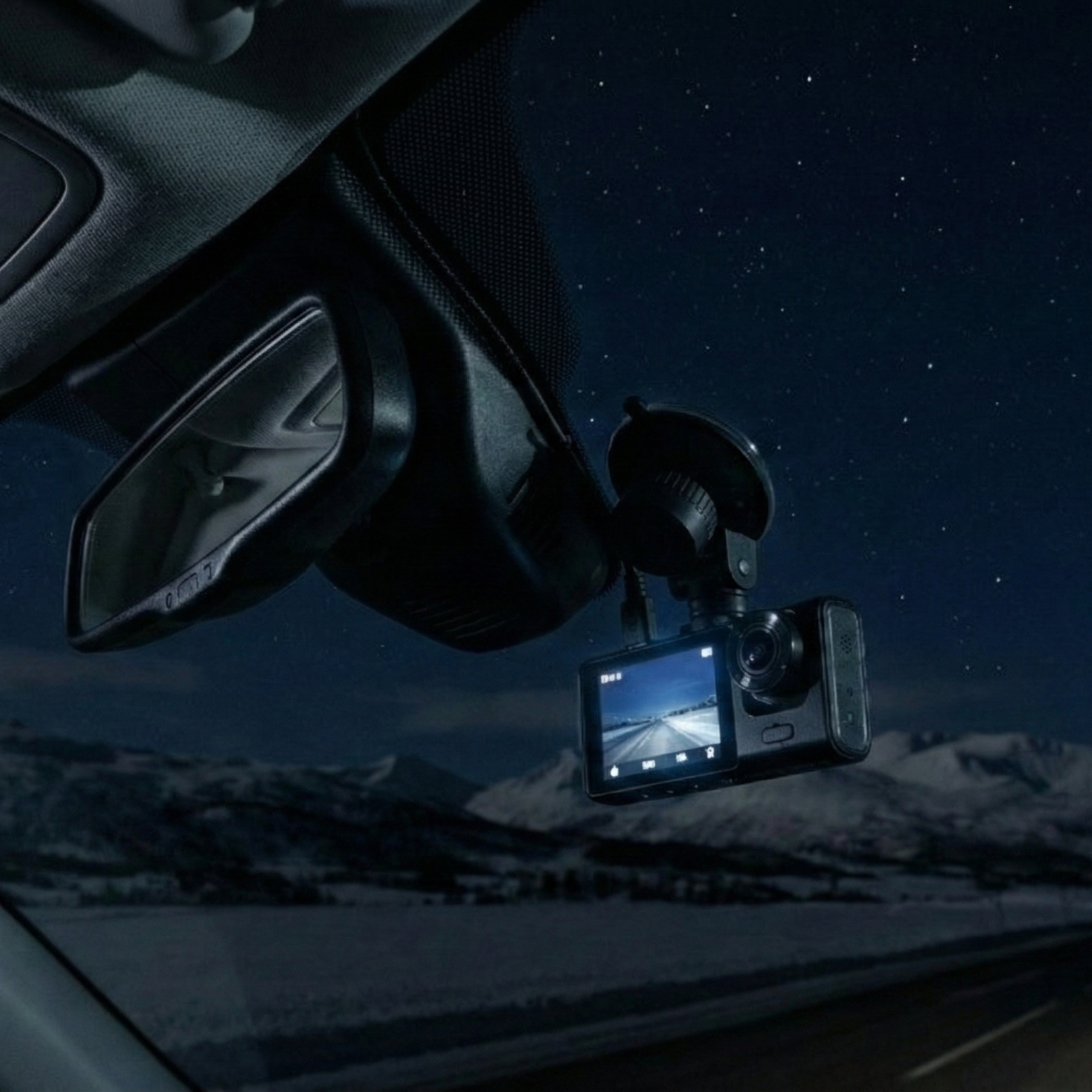 Finn et passende sted på frontruten for å plassere dashcamet. Det anbefales å montere det bak speilet for optimal synsvinkel uten å forstyrre sikten.